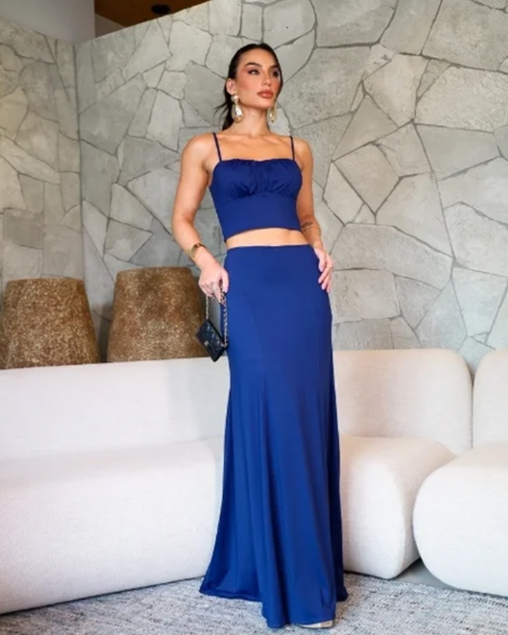 Conjunto Antonella Tecido Crepe Alfaitaria Caramelo